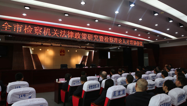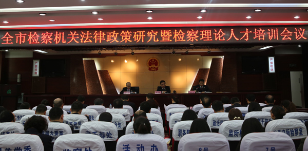 2016年4月6日,全市检察机关法律政策研究暨检察理论人才培训会议在廊坊市院召开。参加会议的有:各院分管法律政策研究工作的领导、研究室主任及检委办人员,市院党组成员、副检察长李雪强参加会议并讲话,会议由市院检委会专职委员姚迎光主持。市院党组书记、检察长冀运福同志对这次会议非常重视,会前专门作出批示。