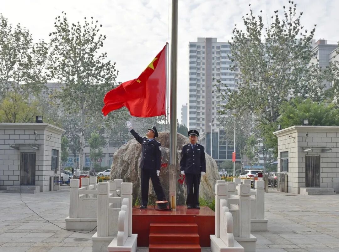 早上8点30分,升国旗仪式正式开始。伴随着庄严的《义勇军进行曲》,鲜艳的五星红旗冉冉升起。在高亢激昂、嘹亮庄严的国歌声中,市院班子成员与检察干警整装列队、肃穆而立,满怀崇敬之情向国旗行注目礼,目视五星红旗迎风飘扬,徐徐上升,为祖国送上最美好的祝福。