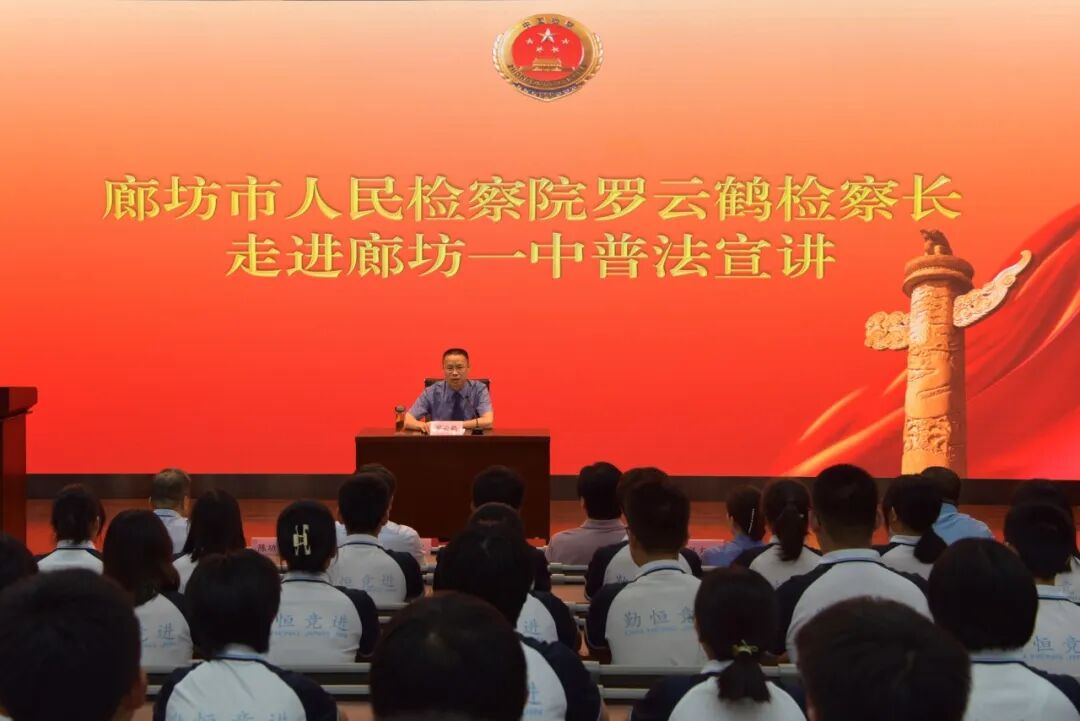 廊坊市教育局局长许红伟,廊坊市人民检察院副检察长汪文娟,廊坊市第一中学党委书记徐永辉参加宣传活动。活动由廊坊市第一中学校长陈功利主持。