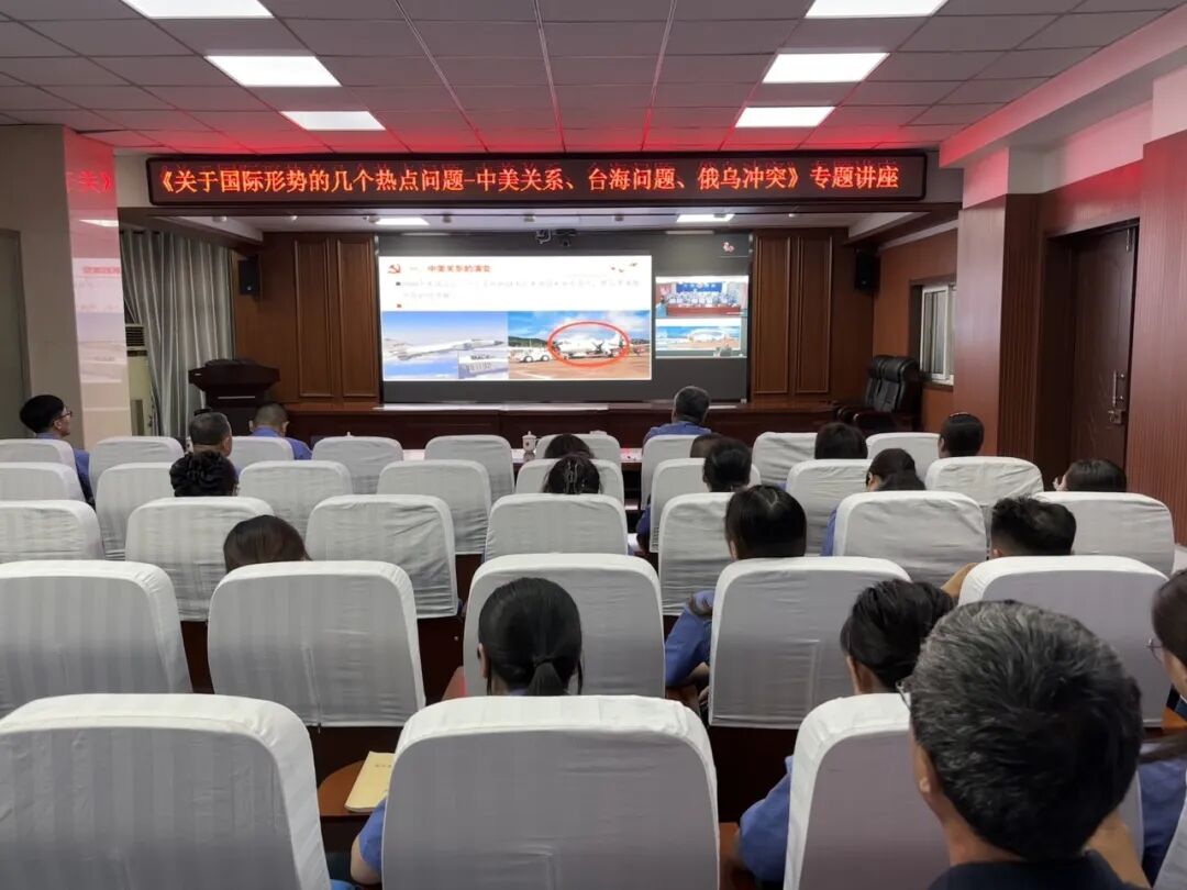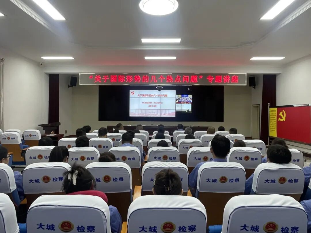 冯教授以《关于国际形势的几个热点问题》为主题,从“中美之间的大国博弈”、“俄乌冲突及其影响”、“周边关系及其热点问题”三个方面进行了讲解,视野宏大、旁征博引、资料详实、事实生动,使全体检察干警对当前深刻复杂的国际形势有了更加清晰的认识,进一步坚定走中国特色社会主义道路的决心和信心。