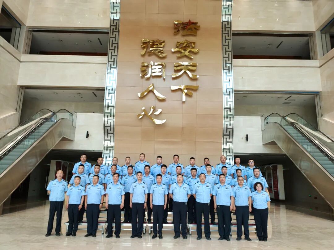 市公安交警支队三大队开展重温入党誓词活动,并在“法安天下,德润人心”下合影。