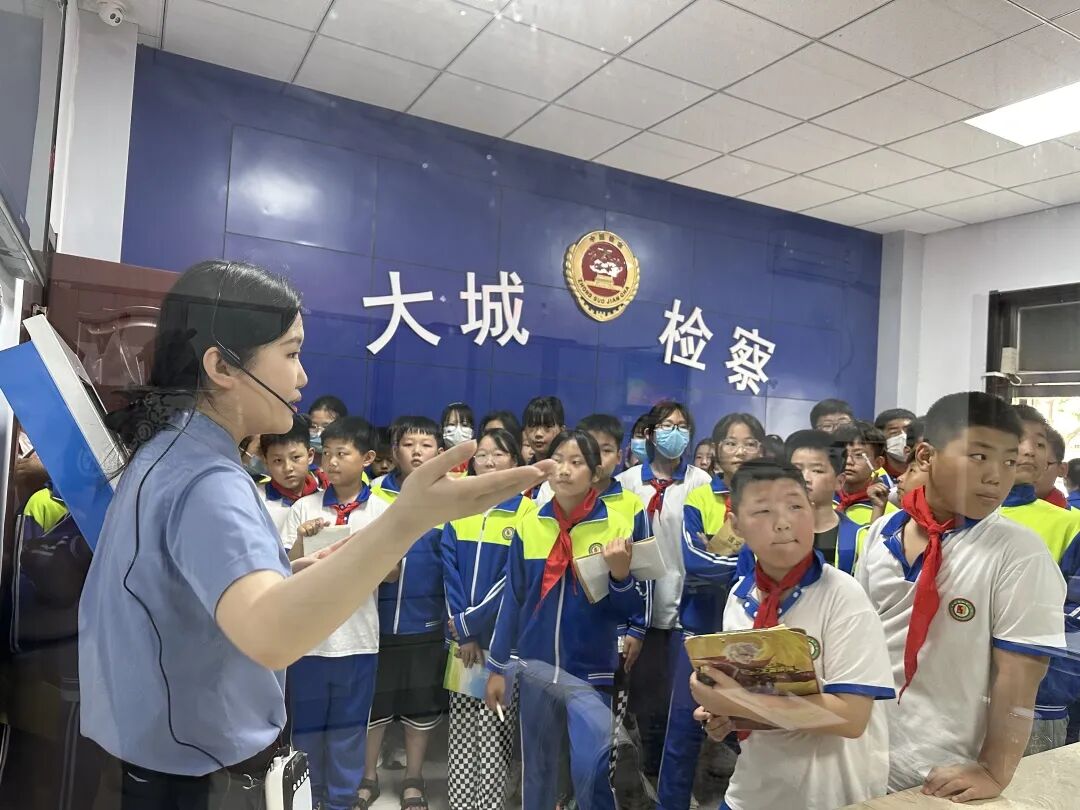 2023年5月31日,在“六一”儿童节来临之际,大城县人民检察院举办“检爱同行,共护花开”检察开放日活动,邀请县妇联、县教体局、团县委、县关工委代表及孙毅小学部分师生、退休老干部代表走进大城检察,共话未检工作。