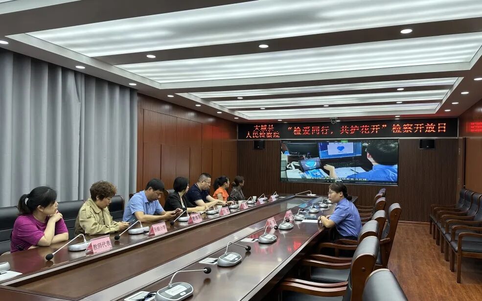 与此同时,县妇联、教体局、团委、关工委人员及教师、老干部代表与未检干警在三楼会议室进行座谈,通过观看检察开放日视频、听取未检工作汇报、畅谈意见建议等方式,面对面沟通交流,共同探讨保护未成年人有力举措。针对与会代表提出的推进检校合作力争法治教育全覆盖、维护妇女儿童做好支持起诉与司法救助工作、开设“女子课堂”支招防范性侵害等建议,我院悉心接受,并将其融入到今后的未检工作中。