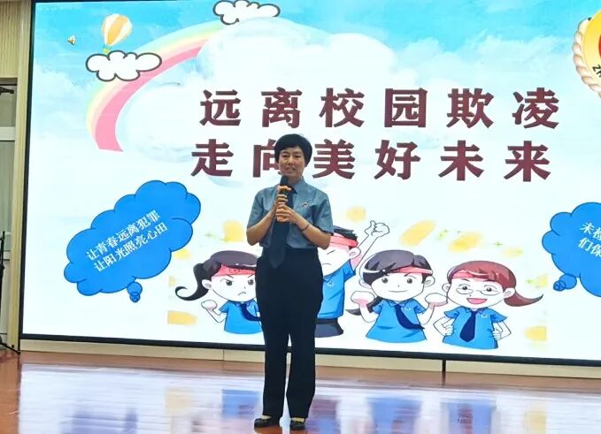 宣讲中,检察官们围绕“什么是校园欺凌、校园欺凌的表现形式、校园欺凌的危害、如何防范应对校园欺凌”四个方面的内容,通过剖析影视素材、讲解真实案例、问答互动等方式,向同学们讲解了刑事责任年龄、刑法常见罪名、刑罚等法律知识,告诫同学们要心存畏惧、言行有度。指出校园欺凌损害学生身心健康,同学们应扣好人生的第一粒扣子,讲规则、明法度,不做校园欺凌的实施者、受害者和旁观者,让法律成为约束和保护自己的有效准则。