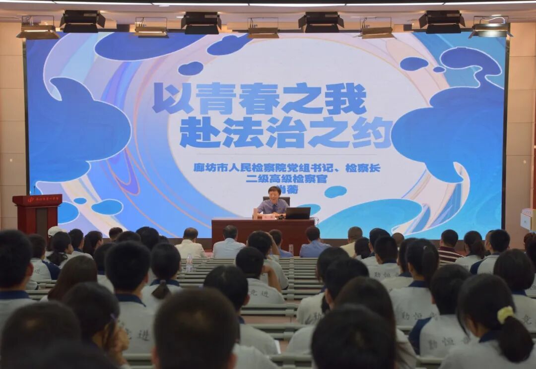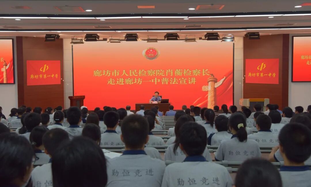 暑期将至,为切实增强青少年法治意识和自我保护能力,让同学们度过一个安全、健康、守法的假期,7月8日上午,廊坊市人民检察院党组书记、检察长肖蘅以法治副校长身份走进廊坊市第一中学讲授法治课,与1600余名高一学生共赴法治之约。