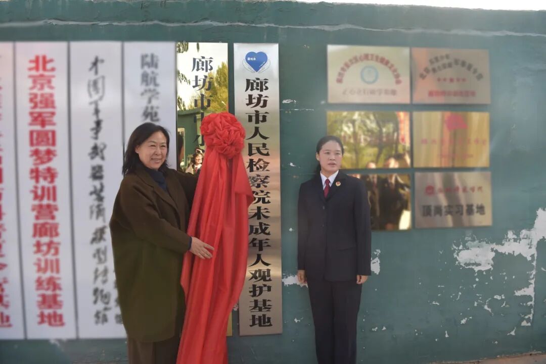 天上繁霜降,人间秋色深。2023年11月3日,廊坊市人民检察院联合廊坊市广阳区品诺社工中心在雄兴军体国防科普研学营地举行“爱佑未”未成年人观护基地揭牌仪式。市检察院副检察长汪文娟、品诺社工司法社工项目负责人张艳平及部分县市区检察院院领导及全市未成年人检察工作办公室负责人、廊坊师范学院相关人员参加揭牌仪式。