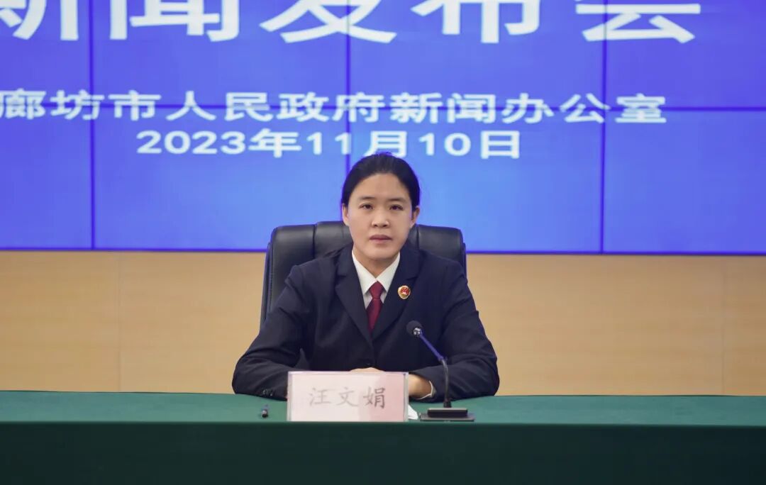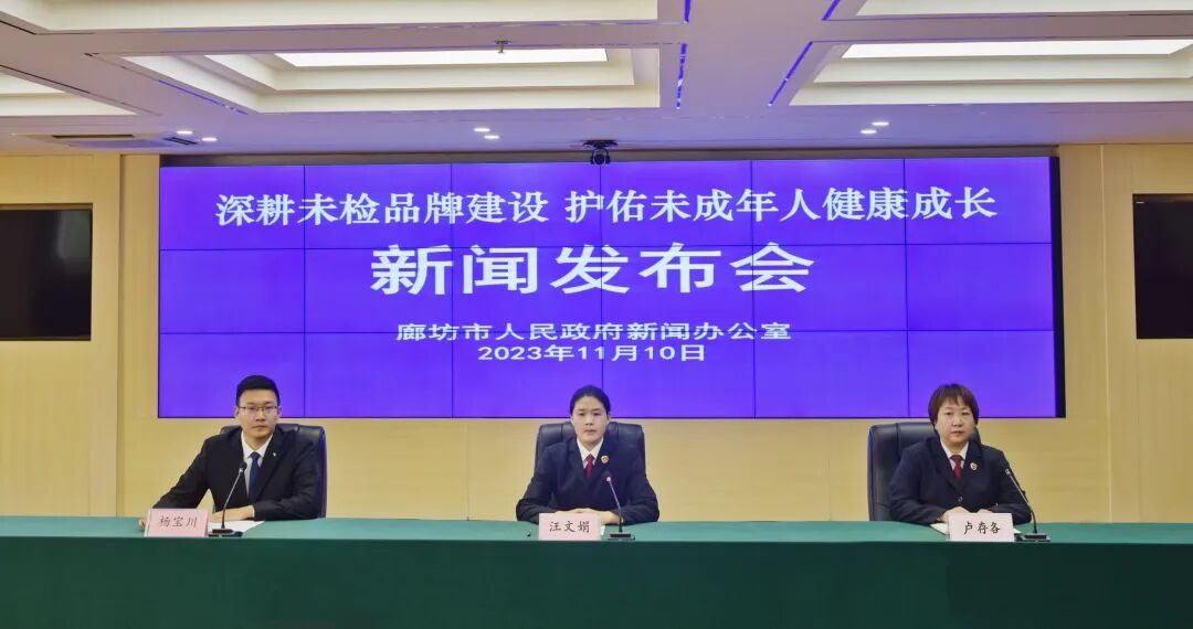 霜染万物,冬之伊始。11月10日上午,廊坊市人民检察院携手廊坊市人民政府新闻办公室组织召开深耕未检品牌建设,护佑未成年人健康成长未检工作新闻发布会。廊坊市检察院副检察长汪文娟、第八检察部主任卢存各参加发布会并答记者问。发布会由市委宣传部杨宝川主持。