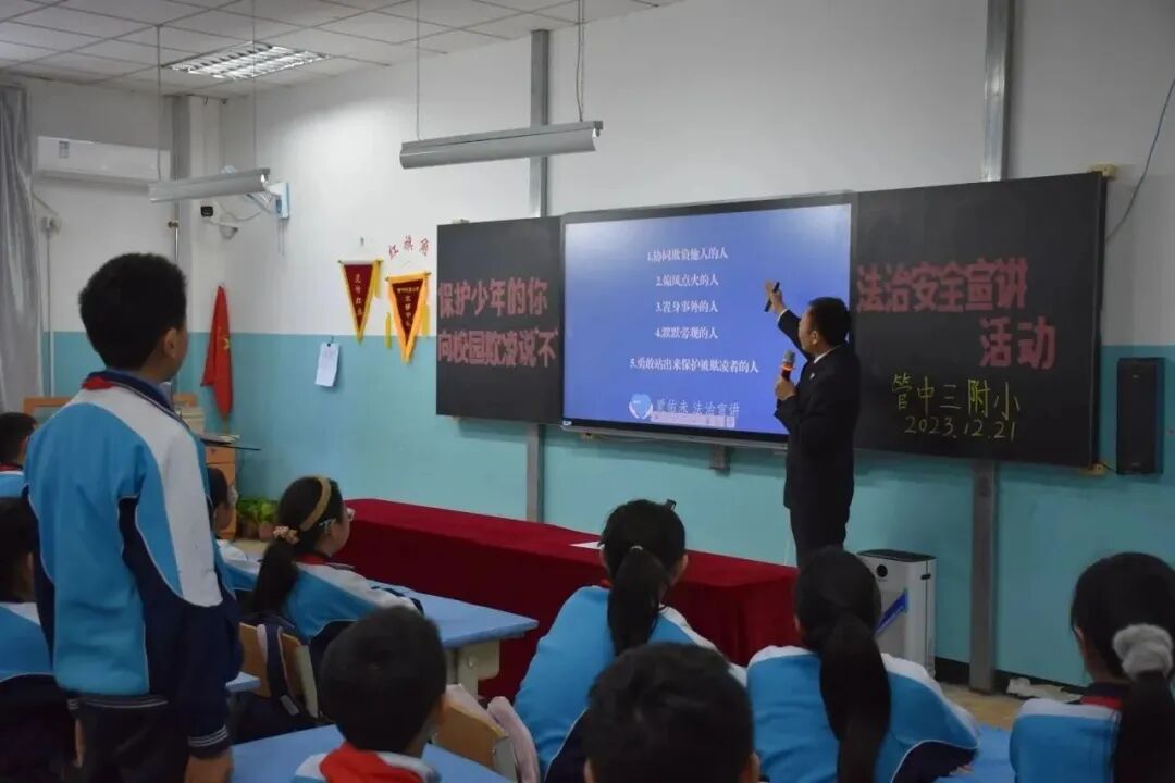 寒风刺骨雪满天,屋里暖意融融间。12月21日,廊坊市检察院党组成员、政治部主任张永富同未检部门干警以法治副校长身份来到管道局中学第三附属小学(九区分校)开展法治宣讲活动。