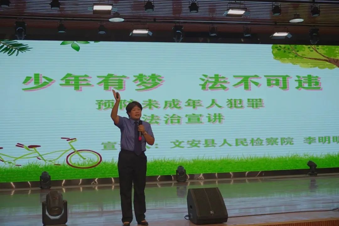 金秋开学季,为强化未成年人法治意识,有效防范未成年人违法犯罪,文安县检察院充分发挥“法治副校长”职能作用,分层次、多样化开展法治宣传进校园活动,帮助青少年学生扣好人生第一粒“法治扣子”。文安县检察院党组书记、检察长邢玉清带队,化身法治副校长的检察官们组成的普法团队赴文安县第一中学、第二中学、贺阳中学、联衡中学、第一小学、第二幼儿园等10余所中小学幼儿园开展送法进校园系列活动,覆盖学生18000余人,发放法治教育资料6500余份,着力强化广大学生的法治意识,以青少年自我保护为主,从常见未成年人违法犯罪行为的原因、防性侵、预防校园欺凌等方面进行授课,为师生送上了暖心“法治大礼包”。同时以生动有趣的方式与学生们积极互动,通过一个个鲜活的案例,深入浅出地讲解了法律在日常生活中的作用,让学生们明白法律是保护自己和他人的有力武器,引导同学们拿起法律的武器保护自己,遇到不法侵害时要勇敢说“不”!同时,还寄语同学们要以朝气蓬勃的精神状态迎接新学期,在今后的生活、学习中要珍惜青春年华,好好学习,努力实现自己的梦想,同时做到崇德尚法,明理笃行。
