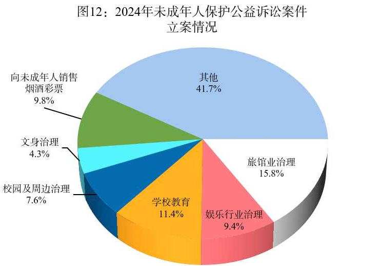 2024年,全国检察机关共立案办理未成年人保护公益诉讼案件12062件。其中,行政公益诉讼11987件,民事公益诉讼75件。